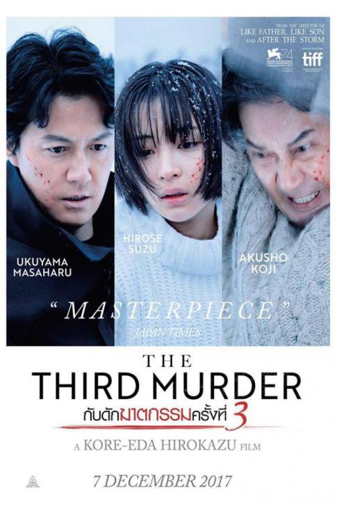The Third Murder ว่าด้วยเรื่องของทนายหนุ่มที่ต้องแก้ต่างให้กับลูกความในคดีปล้นฆ่า จากแก่นพล็อตดังกล่าวหนังค่อยๆ เล่าสืบเสาะหาความจริงที่อยู่เบื้องหลังเรื่องราวการฆาตรกรรมที่เกิดขึ้นทั้งหมด ทนายหนุ่มผู้มีมาดเย็นชาไม่ยี่หระต่อความถูกต้องหรือความเป็นจริงมากกว่ารูปคดีแพ้ชนะในชั้นศาลกลับต้องสั่นสะท้านและจมดิ่งลึกลงไปในความซับซ้อนของใจมนุษย์ เมื่อเขายิ่งสืบหาข้อมูลมาแก้ต่างทางคดี ระหว่างเดินทางปะติดปะต่อเรื่องราวและเหตุผลต่างๆ ยิ่งยากจะทำความเข้าใจในความจริงอันน่าชวนหัว ว่าอะไรคือแรงจูงใจของฆาตกรและตัวละครแวดล้อม และอะไรกันที่ดึงดูดให้ชีวิตเขาจมดิ่งไปกับปมฆาตรกรรมอันเป็นงานดาษดื่นทั่วไปของอาชีพทนายความของเขาได้ขนาดนี้