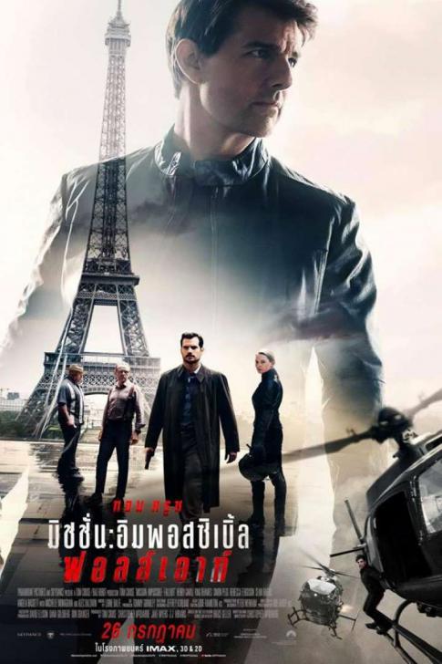 หนัง Mission Impossible 6 หรือชื่อไทยว่า มิชชั่น อิมพอสสิเบิ้ล ฟอลล์เอาท์ พบกับการกลับมาของทอม ครูซ ใน MISSION: IMPOSSIBLE – FALLOUT มิชชั่น: อิมพอสซิเบิ้ล – ฟอลล์เอาท์ ซึ่งอีธาน ฮันท์ (ทอม ครูซ) และทีม IMF (อเล็ก บอลด์วิน, ไซม่อน เพ็กก์, วิง เรมส์) พร้อมด้วยพันธมิตร (รีเบ็คกา เฟอร์กูสัน และมิเชลล์ โมนาแฮน) ต้องกลับมาในปฏิบัติการที่ต้องแข่งกับเวลาหลังจากที่ภารกิจเกิดความผิดพลาด นอกเหนือจากนักแสดงทีมเดิมแล้ว ภาพยนตร์ยังได้ เฮนรี่ คาวิลล์, แองเจลา บาสเส็ตต์ และ วาเนสซา เคอร์บี้ มาร่วมงานด้วย คริสโตเฟอร์ แม็คควอร์รี่ ยังคงรับหน้าที่ผู้กำกับในภาคนี้เช่นเดิม