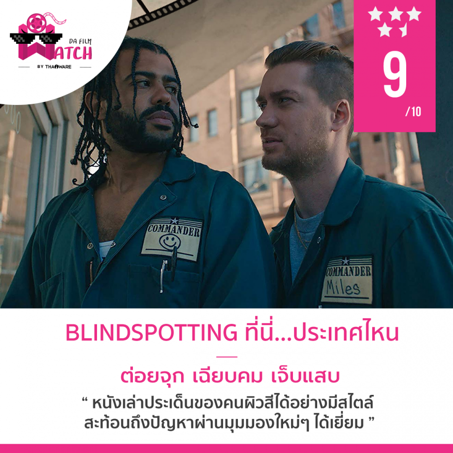 หนัง Blindspotting คอลลิน (ดาวีด ดิกส์) ต้องผ่านช่วงทัณฑ์บนสามวันสุดท้ายให้ได้ก่อนที่จะเริ่มชีวิตใหม่อีกครั้ง เขาและเพื่อนซี้จอมแสบอย่าง ไมลส์ (ราฟาเอล คาซาล) ทำงานเป็นพนักงานรับจ้างเคลื่อนย้าย ที่ได้แต่เฝ้ามองย่านที่พวกเขาโตมาเปลี่ยนแปลงไปอย่างรวดเร็ว เมื่อเกิดเหตุการณ์บางอย่างเกิดขึ้นทำให้คอลลินต้องละเมิดทัณฑ์บน ทั้งสองหนุ่มต้องรักษามิตรภาพของกันละกันเอาไว้ท่ามกลางการเปลี่ยนแปลงทางสังคมที่ทำให้ทั้งคู่เห็นความแตกต่างของกันและกันมากขึ้น เพื่อนซี้ในชีวิตจริงอย่าง ดาวีด ดิกส์ และ ราฟาเอล คาซาล ร่วมเขียนและนำแสดงในเรื่องราวที่เกี่ยวกับมิตรภาพและความแตกต่างทางสีผิวและชนชั้น โดยมีฉากหลังเป็นเมืองโอ๊กแลนด์ มันอัดแน่นไปด้วยสไตล์ อารมณ์ขัน และเนื้อเรื่องอันทรงพลัง