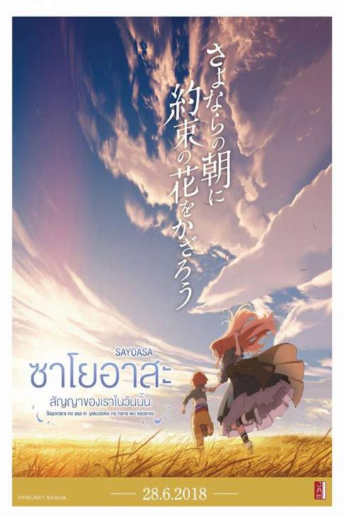 หนัง Sayoasa หรือชื่อไทยว่า สัญญาของเราในวันนั้น ภาพยนตร์อนิเมชั่น ที่จะทำให้นึกถึงคนที่รักคุณมากที่สุด ภาพยนตร์อนิเมชั่นที่อยากให้ทุกคนได้สัมผัสถึงความรักที่ลืมเลือนไปด้วยกัน กับเรื่องราวความรักจากฝีมือการกำกับโดย Okada Mari ผู้เขียนบทอนิเมชั่นชื่อดังอย่าง Anohana, Anthem of the Heart และอีกมากมาย ภายใต้งานภาพจาก P.A. Works ผู้ผลิตอนิเมชั่นชื่อดังอย่าง Hanasaku Iroha, Angel Beats!