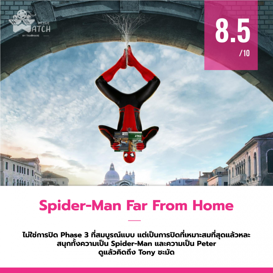 สรุปแล้ว Spider-Man Far From Home ไม่ใช่หนังที่สมบูรณ์แบบในแง่การเป็นหนังปิด Phase 3 แต่มันเป็นหนังปิดที่เหมาะสมแล้ว และเป็นหนัง Spider-Man ที่สนุกเรื่องนึงเลยทีเดียว แถมยังทิ้งทวนได้น่าติดตามเพื่อนำไปสู่ Phase 4 ได้อย่างดีเลยทีเดียว