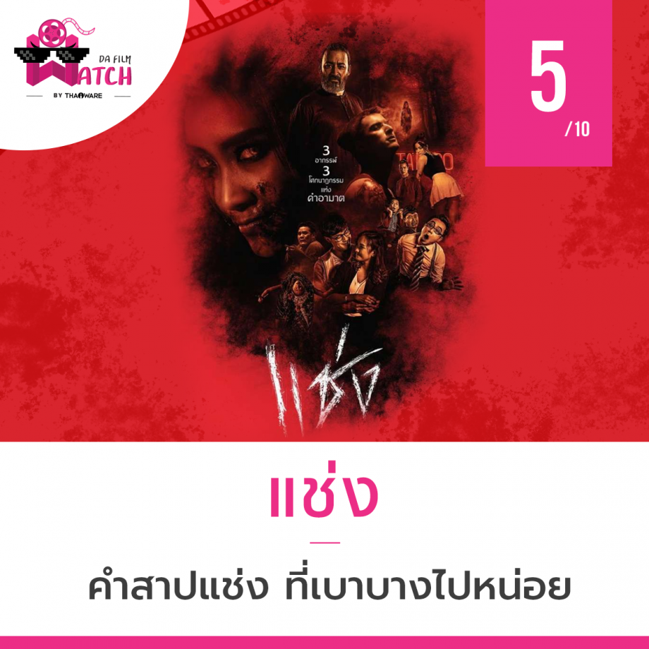 หนัง Chaeng หรือชื่อไทยว่า แช่ง เรื่องย่อ “แช่ง” อาถรรพ์จากคำสาปแช่ง ที่เกิดขึ้นจากแรงอาฆาต ก่อให้เกิดโศกนาฏกรรมแห่งการจองเวร 3 เรื่อง 3 ความแค้น Chapter 1: วิปลาส โจเซฟ บาทหลวงวัยกลางคนได้รับเบาะแสการตายของ เพื่อนบาทหลวงผู้ทำหน้าที่มิชชันนารีในหมู่บ้านแห่งหนึ่งนามว่าลอนโด โดยเบาะแสนั้นก็คือเครื่องบันทึกแผ่นเสียงการแสดงละครรำ ในคืนที่เชื่อกันว่าเป็นต้นตอของคำสาปที่ทำให้ประชากรในหมู่บ้านค่อยๆ ล้มตายไปกว่าครึ่ง โดยเสียงเพลงที่ได้ยินนั้น เป็นเสียงร้องที่ไพเราะประหนึ่งนางอัปสรณ์บรรเลงพิณ แต่กลับให้ความรู้สึกโหยหวนราวกับเสียงของปีศาจ โจเซฟจึงตัดสินใจออกไปตามหาต้นตอของเรื่องราวทั้งหมด จนพบกับความจริงที่ค่อยๆเผยให้เห็นถึงด้านมืดของจิตใจมนุษย์ และต้นตอของคำสาปที่น่าสะพรึงกลัวที่เกิดขึ้นจากแม่ลูก นักขับเสภา ชื่นและชม และจุดจบที่น่าเวทนา ในบรรยากาศความลึกลับน่ากลัวของบรรยากาศบ้านป่าของประเทศสยามในปลายรัชสมัย รัชกาลที่ 6 ที่ความเจริญยังไม่รุกคืบความเชื่อเรื่องไสยศาสตร์ Chapter 2: Tattoo เฟรดดี้ หนุ่มช่างสักฝีมือดีที่ใช้ชีวิตให้ผ่านไปแต่ละวัน หลังจากที่ต้องเลิกรากับหญิงสาวนาม ลันตา ผู้เป็นรักเดียวของเขา จนกระทั่งวันหนึ่ง ลันตากลับมาหาเขาพร้อมกับความน่าสะพรึงกลัวบางอย่างที่ตามหลอกหลอน ลันตา และพาให้คนรอบตัวของเธอต้องพบกับความหายนะ จากคำสาปแช่งอันเกิดจากความลุ่มหลงจมสู่กิเลสอันลึกล้ำ และดูเหมือนคำสาปนั้นจะเข้าจู่โจม เชส เพื่อนของเฟรดดี้ที่หลงมาหลงรักลันตาโดยไม่รู้อิโหน่อิเหน่อะไรด้วย เฟรดดี้จึงตัดสินใจที่จะป้องกันและขัดขวางไม่ให้เรื่องราวเลวร้ายเกิดขึ้นกับคนที่เขารักทั้ง 2 แม้ต้องเผชิญกับความผิดบาปที่ทั้งสองต่างมีส่วนร่วมสร้างมันขึ้นมาแบกไว้ที่ตนเอง เล่าผ่านด้วยอารมณ์ความรักอันแสนอึมครึม และความเย็นเยียบที่กัดกินความเหงาของหนุ่มสาวสมัยใหม่ท่ามกลางความวุ่นวายในเมืองหลวง Chapter 3: เมียแช่ง ซัน ชายหนุ่มผู้ซึ่ง พยายามเป็นที่ยอมรับ และเป็นสามีที่ดีของจีจี้ ผู้เป็นภรรยา วันหนึ่ง เขาเกิดจำไม่ได้ว่าเกิดอะไรขึ้นในช่วงสามวันที่ผ่านมา และเขารู้สึกว่า มีอะไรตามหลอกหลอนเขาตลอด จนคนรอบข้างต้องหาวิธีช่วยเหลือเหตุการณ์ที่เขาต้องเผชิญ ปะติดปะต่อกันถึงสาเหตุของความทรงจำที่หายไป ท้ายสุดทุกอย่างก็ถูกเฉลย และ ทุกคนก็ยอมรับในสิ่งที่เกิดขึ้น และจบลง