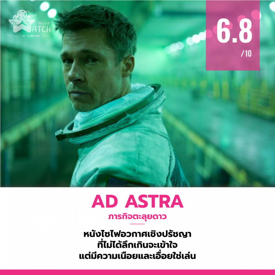 โดยรวมแล้ว Ad Astra ถือว่าโอเคเลยนะเพียงแต่อาจจะไม่เหมาะกับคนที่ไม่ชอบดูหนัง Slowburn ไม่ชอบหนัง Sci-fi ปรัชญาค้นหาชีวิต อาจจะต้องผ่านไปจะดีกว่า เพราะมันแทบจะไม่มีความแอ็กชั่น ไม่โครมครามและเล่าเรื่องเรื่อยๆ (แต่ต้องย้ำว่าไม่ได้น่าเบื่อ) เลย แต่แค่การแสดงของ Brad Pitt ก็คุ้มที่จะมาลองดูชมเหมือนกันครับ