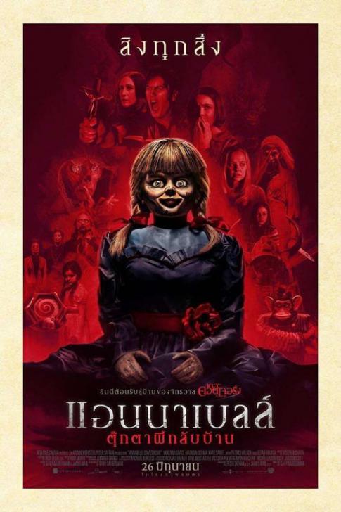 หนัง Annabelle Comes Home หรือชื่อไทยว่า แอนนาเบลล์ ตุ๊กตาผีกลับบ้าน "Annabelle Comes Home ตุ๊กตาผีกลับบ้าน" เป็นภาคต่อลำดับที่สามของภาพยนตร์ชุด "Annabelle" จาก New Line Cinema ที่สร้างความสำเร็จครั้งใหญ่ไปทั่วโลก ด้วยความสยองของตุ๊กตาผีผู้โด่งดังจากจักรวาล เดอะ คอนเจอริ่ง นำทีมสร้างโดย แกรี่ ดาวเบอร์แมน ผู้เขียนบทภาพยนตร์ "IT", "The Nun", "Annabelle" และ "Annabelle: Creation" ที่คราวนี้ขอรับหน้าที่ผู้กำกับเป็นครั้งแรก ภายใต้การดูแลของ ปีเตอร์ ซาฟรานและเจมส์ วาน โปรดิวเซอร์คู่บุญจาก "Aquaman" ผู้บุกเบิกจักรวาลเดอะ คอนเจอริ่ง "เพื่อป้องกันไม่ให้ปีศาจร้ายออกอาละวาดอีกครั้ง นักปีศาจวิทยา เอ็ดและลอร์เรน วอร์เรน ตัดสินใจขังตุ๊กตาผีเอาไว้ในห้องเก็บของในบ้านของพวกเขา โดยใส่ไว้ในตู้กระจกที่สะกดไว้ด้วยมนต์ศักดิ์สิทธิ์ของศริสตจักร แต่ก็ไม่อาจหยุดยั้งความชั่วร้ายเอาไว้ได้ เมื่อคืนหนึ่งตุ๊กตาผีแอนนาเบลล์ปลุกปีศาจที่สิงสถิตย์อยู่ในห้องนั้นขึ้นมา พร้อมออกล่าเหยื่อรายใหม่ที่เอ็ดและลอร์เรนคาดไม่ถึง นั่นคือ จูดี้ ลูกสาววัย 10 ขวบของพวกเขาและกลุ่มเพื่อนของเธอ"