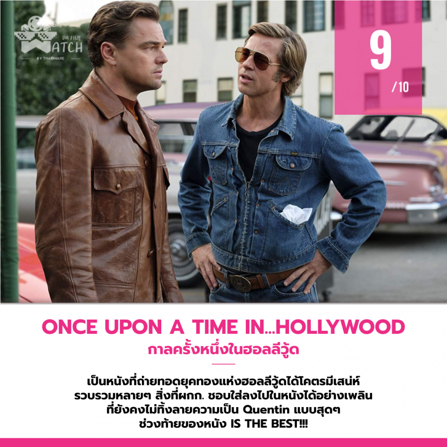Once Upon a Time in Hollywood คือเรื่องราวที่เกิดขึ้นในเมืองแห่งภาพยนตร์อย่างฮอลลีวู้ดในยุค 60 ริค ดาลตัน อดีตดาราหนุ่มชื่อดังและ คลิฟฟ์ บูธ สตั้นท์แมนคู่ใจที่เป็นดังเพื่อนสนิท พยายามจะดิ้นรนหาทางให้กลับมามีบทบาทและประสบความสำเร็จอีกครั้งในวงการภาพยนตร์ นี่คือผลงานเรื่องที่ 9 ของเควนติน ทารันทิโน่ ที่หยิบเรื่องราวที่เกิดขึ้นจริงอย่างเหตุการณ์ฆาตกรรมสุดสยองโดย ชาร์ล แมนสัน และลัทธิของเค้ามาเป็นแบ็คกราวสตอรี่ให้กับเรื่องนี้