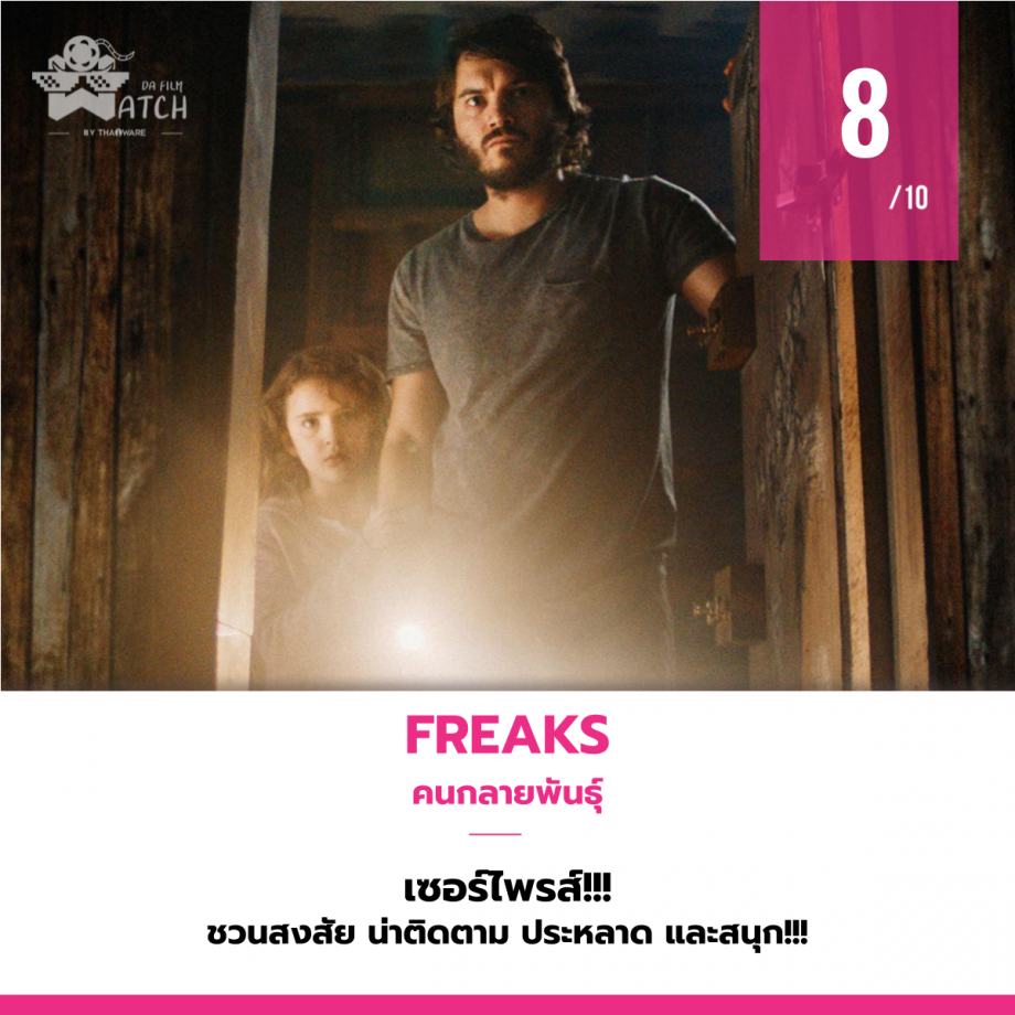 ปีนี้คอหนังมนุษย์กลายพันธุ์คงได้แต่ผิดหวังไปตามๆ กันกับการปิดตำนานมนุษย์กลายพันธุ์อย่าง X-Men Dark Phoenix ดูเหมือนว่าถ้าแม้จะผิดหวังในเรื่องนั้น Freaks เรื่องนี้ถ้าแม้จะไม่ได้เกี่ยวข้องอะไร แต่ก็เล่าประเด็นมนุษย์กลายพันธุ์ได้น่าติดตามจริงๆ