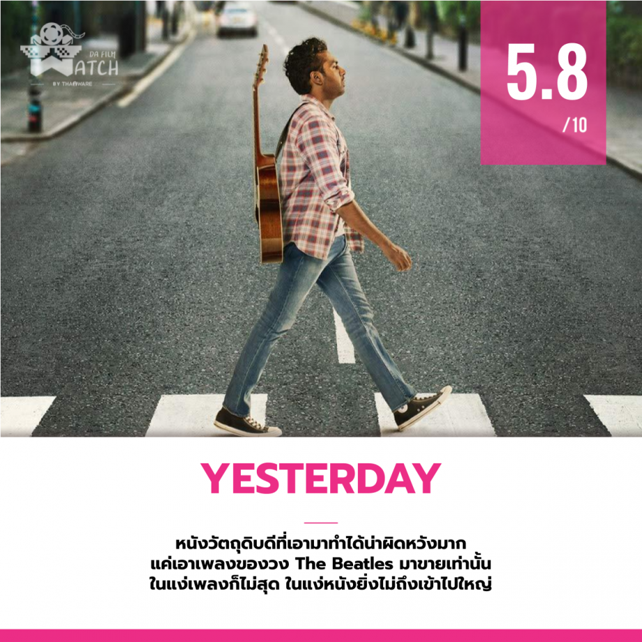 หนัง Yesterday หนังที่เล่าถึงชายหนุ่มนักดนตรีธรรมดา ที่เกิดประสบอุบัติเหตุโดนรถชนระหว่างทาง ในขณะที่โลกกำลังมีสิ่งผิดปกติบางอย่างเกิดขึ้น แล้วพอเขาฟื้นขึ้นมา ก็พบว่า เขาเป็นคนเดียวในโลก ที่รู้จักวงในตำนานอย่าง The Beatles หลังจากที่เล่นเพลง Yesterday แล้วไม่มีใครรู้จักเพลงนี้เลยสักคน แถมยังคิดว่าเขาเป็นผู้แต่งมันเองอีก และด้วยเหตุนี้เอง ทำให้เพลงของเขาดังเป็นพลุแตก จนทำให้เขาโด่งดังเป็นศิลปินระดับโลก!!