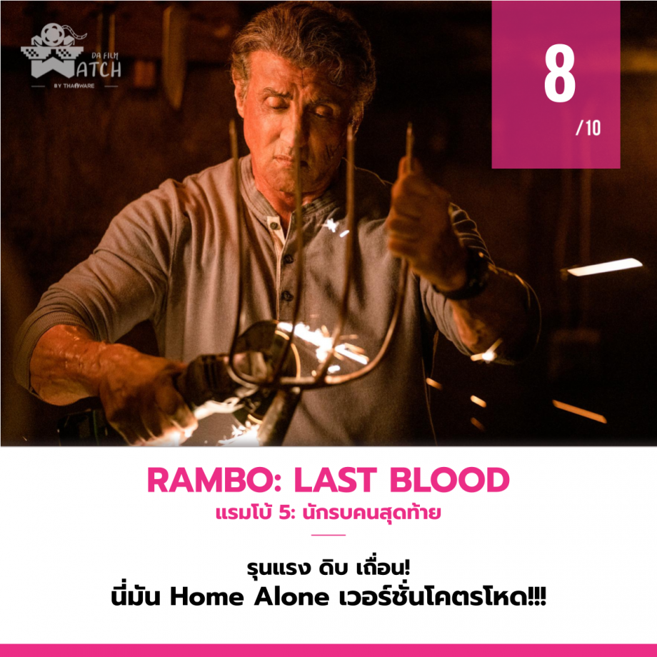 โดยส่วนตัวยกให้ Rambo: Last Blood คือภาคที่ดีที่สุดของแฟรนไชส์ Rambo เลย ทั้งด้านเนื้อหา และการดำเนินเรื่อง ครึ่งเรื่องแรกค่อนข้างดราม่าและหดหู่ เพราะหนังต้องปูเรื่องราวทวีความแค้นของตัว Rambo ก่อน ส่วนในครึ่งหลังนี่จัดเต็ม ดิบ เถื่อน โหด มันคือการทวงแค้นแบบสะใจคอหนังแอ็คชั่นแนวนี้แบบสุดๆ ยิ่งฉากหลังๆ ชวนให้นึกถึง Home Alone แต่เป็นเวอร์ชั่นที่รุนแรงกว่า โหดกว่า และเลือดสาดกว่ากันเยอะ!