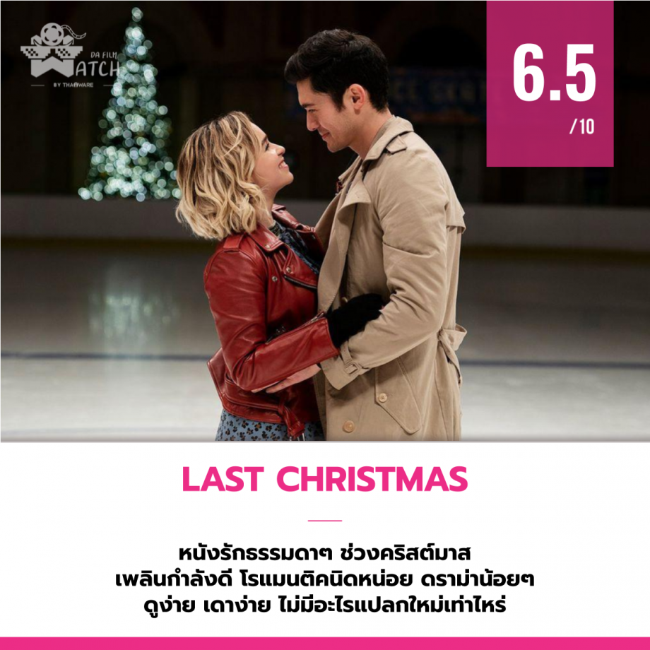 หนัง Last Christmas หรือชื่อไทยว่า ลาสต์ คริสต์มาส เอมิเลีย คลาร์ก (Game of Thrones), เฮนรี่ โกลดิ้ง (A Simple Favor, Crazy Rich Asians), มิเชลล์ โหย่ว และเอ็มม่า ธอมป์สัน ร่วมแสดงใน Last Christmas ภาพยนตร์กำกับโดย พอล ฟีก (A Simple Favor, Spy, Bridesmaids) ภาพยนตร์โรแมนติคคอเมดี้เรื่องนี้ได้รับแรงบันดาลใจจากเพลงของจอร์จ ไมเคิล ภาพยนตร์เขียนบทโดยเอ็มม่า ธอมป์สัน (Sense and Sensibility, Bridget Jones’s Baby) และไบรโอนี่ คิมมิงส์ เคท (เอมิเลีย คลาร์ก) แต่งตัวรุ่มร่ามอยู่ในชุดเอลฟ์ เธอทำงานอยู่ในร้านขายของคริสต์มาสต์ในลอนดอน กำลังอยู่ในช่วงย่ำแย่ในชีวิต และทอม (เฮนรี่ โกลดิ้ง) ชายหนุ่มที่ดูดีเกินจริงได้เข้ามาในชีวิตเธอและพาเธอก้าวข้ามอุปสรรคในชีวิต และลอนดอนก็เข้าสู่ช่วงมหัศจรรย์ของปี บางครั้ง คุณก็เพียงแค่ปล่อยให้หิมะตกไป ฟังเสียงของหัวใจ และมีศรัทธา Last Christmas มีเพลงของจอร์จ ไมเคิลในภาพยนตร์ รวมถึงเพลงชื่อเดียวกับภาพยนตร์ นอกจากนี้ ยังมีเพลงของจอร์จ ไมเคิล ที่ยังไม่ได้ปล่อยออกมา จอร์จ ไมเคิล คือศิลปินระดับตำนานที่เคยได้รับรางวัลแกรมมี่ มียอดขายอัลบั้มมากกว่า 115 ล้านอัลบั้ม มีเพลงขึ้นอันดับ 1 ถึง 10 เพลง ภาพยนตร์อำนวยการสร้างโดย เดวิด ลิฟวิงสโตน จากคาลามิตี้ฟิล์มส์, เอ็มม่า ธอมป์สัน, พอล ฟีก และเจสซี่ เฮนเดอร์สัน จากฟีกโค เอนเตอร์เทนเมนท์ ภาพยนตร์บริหารงานสร้างโดย ซาร่าห์ แบรดชอว์