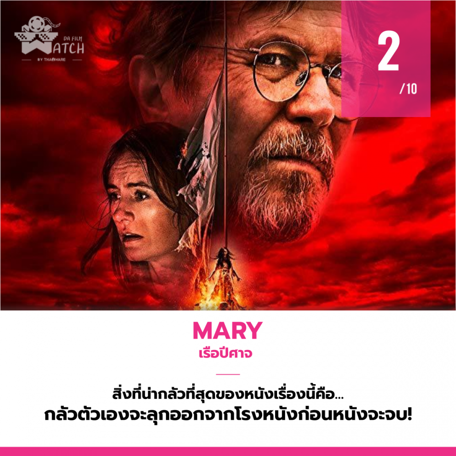 หนัง Mary หรือชื่อไทยว่า เรือปีศาจ ระวังเรือของคุณให้ดี! เพราะแรงอาถรรพ์จะทำให้ทริปฤดูร้อนกลายเป็นทริปสุดท้ายของ ชีวิต ผลงานสุดสะพรึงจากผู้สร้าง Oculus และมือเขียนบท The Shallows เรื่องราวของ เดวิด (แกรี่ โอลด์แมน) ได้ซื้อเรือหรูลำหนึ่งที่ชื่อว่า แมรี่ เขาหวังว่าเรือลำนี้จะทำให้ชีวิตของครอบครัวเขาดีกว่าเดิมโดยไม่รู้เรื่องอดีตอันน่าขนลุกของมัน เมื่อพวกเขานำเรือออกทริป ก็เกิดเหตุการณ์เหนือธรรมชาติคอยคุกคามชีวิตของครอบครัวเขาจนทำให้เรือเดินออกนอกเส้นทาง และแล้วพวกเขาก็ต้องเผชิญหน้ากับความสยองครั้งใหญ่กลางทะเลลึก ซึ่งมันอาจจะเป็นทริปสุดท้ายของชีวิต!