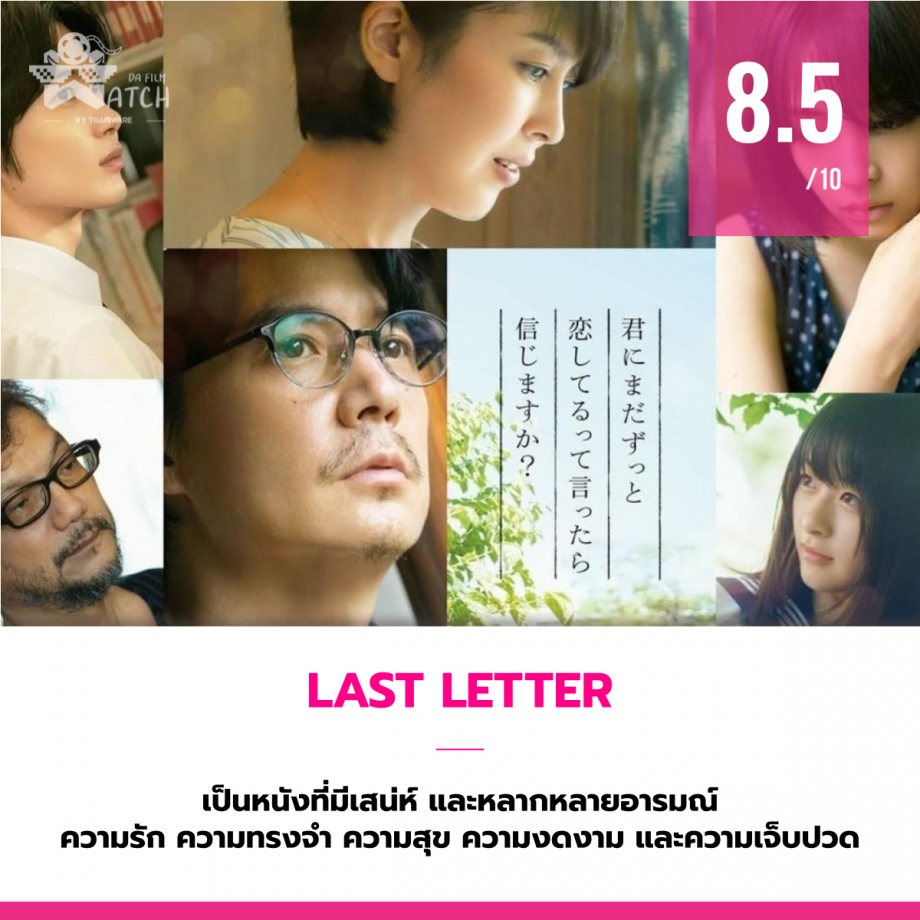 สรุปแล้ว Last Letter มันก็ยังมีจุดที่ไม่มีเหตุผลและไม่ได้บอกกล่าวอยู่บ้าง ชวนให้เราสงสัยในบางจุด และเสียดายที่น่าจะขยี้ความดราม่าให้ได้มากกว่านี้ แต่ทั้งหมดทั้งมวลแล้วหนังเรื่องนี้มันมีเสน่ห์จริงๆ มันมีห้วงอารมณ์และความรู้สึกส่งผ่านมาถึงคนดูได้อย่างมากมาย โดยเฉพาะเรื่องราวของความทรงจำ บางสิ่ง บางคน บางอารมณ์ บางความรู้สึก อาจจะไม่อยู่กับเราในตอนนี้แล้ว มันไม่ได้หายไปไหนหรอก สิ่งเหล่านั้นยังอยู่ในความทรงจำเราเสมอ บางครั้งความทรงจำดีๆ เหล่านั้นก็ช่วยเราได้ในบางเวลาจริงๆ