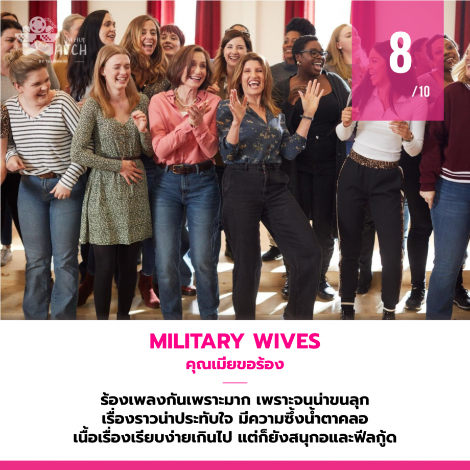 หนัง Military Wives เรื่องราวของกลุ่มภรรยานายทหารที่สามีของพวกเธอรับใช้ชาติ พวกเธอจึงออกมาร้องเพลงให้กลายเป็นพลังส่งต่อกำลังใจให้กลุ่มภรรยาทหารด้วยกัน