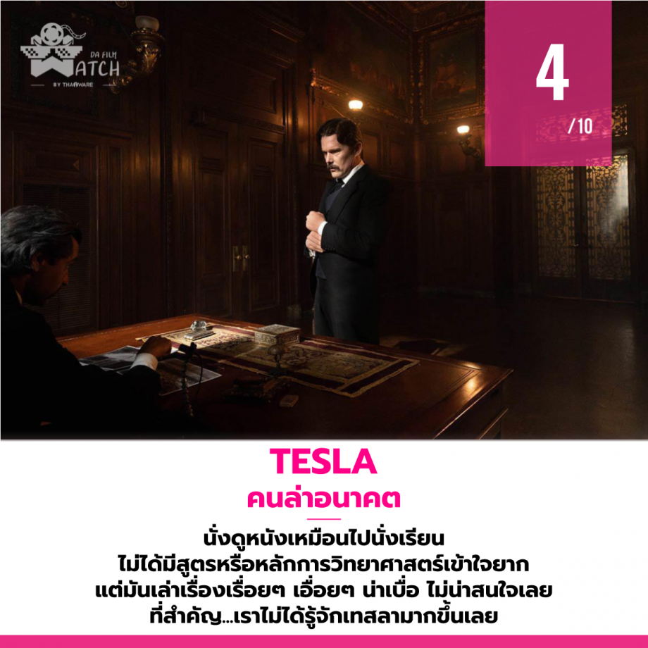 หนัง Tesla เรื่องราวการประดิษฐ์คิดค้นของของ Nikola Tesla ผู้คิดค้นระบบนำจ่ายไฟฟ้า และความสัมพันธ์ของเขากับ Thomas Edison และ Anne ลูกสาวของ J.P. Morgan