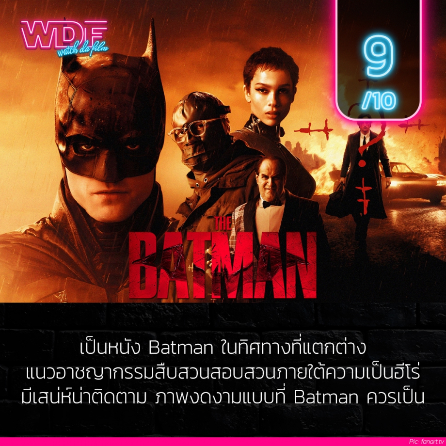 สรุป ถือว่ามาถูกทางและหนังเป็นแนวทางที่ดีเลย มีเสน่ห์และมีเอกลักษณ์ในตัวของมันเอง ภาวนาเลยแหละว่าอยากให้มีภาคต่อ และอยากให้ยึดแนวทางแบบนี้ต่อไป แต่คิดว่าถ้ามีภาคต่อแนวทางอาจเปลี่ยนไปตามตัวร้ายในภาคนั้น The Batman คือหนังมันมาในช่วงเวลาที่เหมาะสมแหละ คนเริ่มเบื่อหนังฮีโร่จ๋า ๆ แบบร่วมมือกันปราบตัวร้ายอะไรแบบนั้นแล้ว พอมีหนังฮีโร่ที่แปลกแหวกแนวออกมา มันก็สร้างแรงกระเพื่อมสร้างความแตกต่างออกมา และทำได้ดีซะด้วยสิ ทางด้านแฟนคลับ Batman หลายคนต้องชอบแน่นอน มี Easter Egg และฉากที่ทำแฟน ๆ นั่งเก้าอี้ไม่ติดแน่นอน