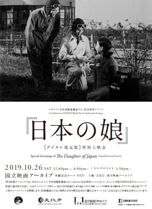 หนัง The Daughter of Japan นักบินหนุ่มชาวพม่าสองคนซึ่งเป็นพี่น้องกัน เดินทางไปยังญี่ปุ่นเพื่อสานฝันในการขับเครื่องบินจากโตเกียวมายังกรุงย่างกุ้ง แต่ที่ญี่ปุ่น พี่ชายคนโตตกหลุมรักสาวญี่ปุ่นชื่อเอมิโกะ ทำให้แผนการขับเครื่องบินของพวกเขา รวมทั้งความสัมพันธ์ระหว่างพี่น้องทั้งสองต้องสั่นคลอน The Daughter of Japan เป็นงานกำกับและนำแสดงโดย ญี ปุ นักสร้างหนังและนักแสดงคนสำคัญที่ได้ชื่อว่าเป็น “บิดาแห่งภาพยนตร์เมียนมา” ซึ่งทำหนังเรื่องนี้ระหว่างอาศัยอยู่ในญี่ปุ่น นี่ยังเป็นหนังร่วมทุนระหว่างเมียนมาและญี่ปุ่นเรื่องแรก หอภาพยนตร์ญี่ปุ่นเป็นผู้บูรณะภาพยนตร์เรื่องนี้ด้วยความช่วยเหลือทางเทคนิคของ IMAGICA Lab