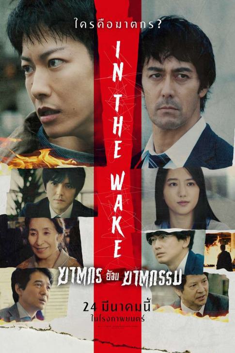หนัง In the Wake หรือชื่อไทยว่า ฆาตกรย้อนฆาตกรรม 9 ปีหลังจากเหตุการณ์สึนามิถล่มที่โทโฮคุ (ภาคตะวันออกเฉียงเหนือของญี่ปุ่น) ได้เกิดคดีฆาตกรรม 2 คดีขึ้นที่เมืองเซนได ในจังหวัดมิยากิ โดยเหยื่อจากทั้ง 2 คดีต่างถูกสันนิษฐานว่าอาจเกิดจากน้ำมือของฆาตกรคนเดียวกัน ซึ่งสาเหตุการเสียชีวิตเกิดจากการอดอาหารจนตาย ขณะเดียวกัน ยาสุฮิสะ โทเนะ (ทาเครุ ซาโต้) ผู้ต้องสงสัยในคดีดังกล่าวที่เพิ่งถูกปล่อยตัวออกมาจากคุก ได้ก่อเหตุลอบวางเพลิงและทำร้ายร่างกายผู้ชายคนหนึ่งเพื่อปกป้องคนที่เขารู้จัก ทำให้นักสืบ เซอิจิโระ โทมาชิโนะ (ฮิโรชิ อาเบะ) ค้นพบความเชื่อมโยงถึงเหยื่อทั้งสองคนที่ถูกฆาตกรรมในเมืองเซนได และพยายามจะตามล่าตัวโทเนะ เพราะเมื่อยิ่งสืบลึกลงไปเขาก็ยิ่งกลายเป็นผู้ต้องสงสัยในคดีนี้มากขึ้นทุกที