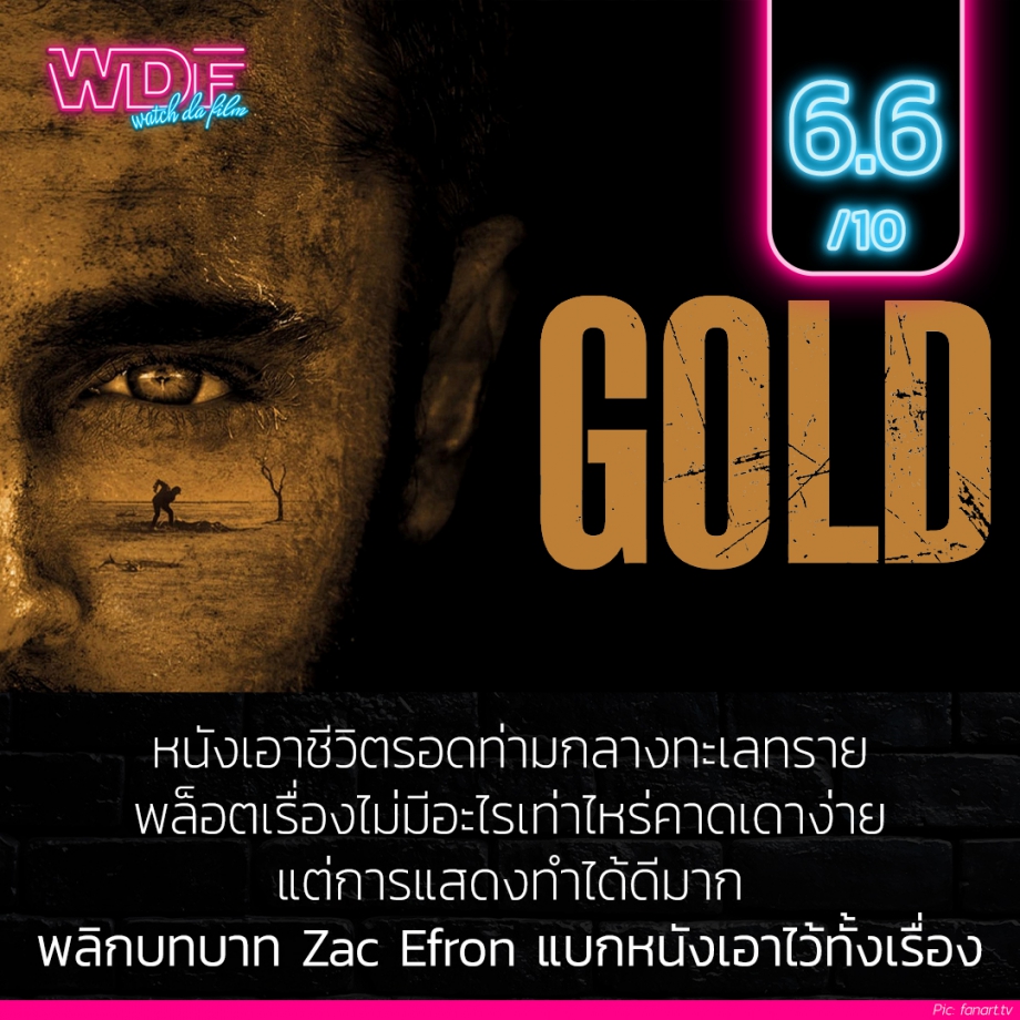 Gold มีชื่อไทยว่า ทองกู ก็ตามชื่อเรื่องเลย 555+ เป็นเรื่องราวที่บอกเล่าถึงชายคนหนึ่ง (Zac Efron) ที่กำลังเดินทางไปหางานใหม่ เขาก็หาคนพาไปยังแคมป์แห่งหนึ่ง แต่ในระหว่างทางทั้งคู่ก็ได้พบทองคำก้อนใหญ่ แต่ทำยังไงก็เอาขึ้นมาไม่ได้ ใครสักคนจึงต้องรับหน้าที่ไปเอาเครื่องมาขุดทอง และอีกคนก็ต้องรับหน้าที่เฝ้าทองนั้นไว้ เลยทำให้ชายผู้หางาน (Zac Efron) รับหน้าที่เฝ้าทองหลายวันหลายคืนท่ามกลางทะเลทรายอันหฤโหด