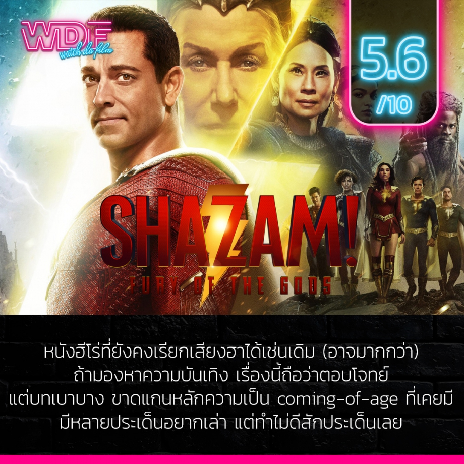 สรุปแล้ว Shazam! Fury of the Gods - ชาแซม! จุดเดือดเทพเจ้า เป็นหนังฮีโร่ที่บันเทิงเรื่องนี้ ตั้งใจขายมุกตลกเหมือนภาคแรกเลย แอ็คชันเยอะขึ้นแต่ก็ไม่มีอะไรให้น่าจดจำ ส่วนทางด้านเนื้อเรื่องนี่เบาบางเลื่อนลอยสุด ๆ ประเด็นหลักที่เคยทำได้ดีก็โดนละเลยไปอย่างน่าเสียดาย