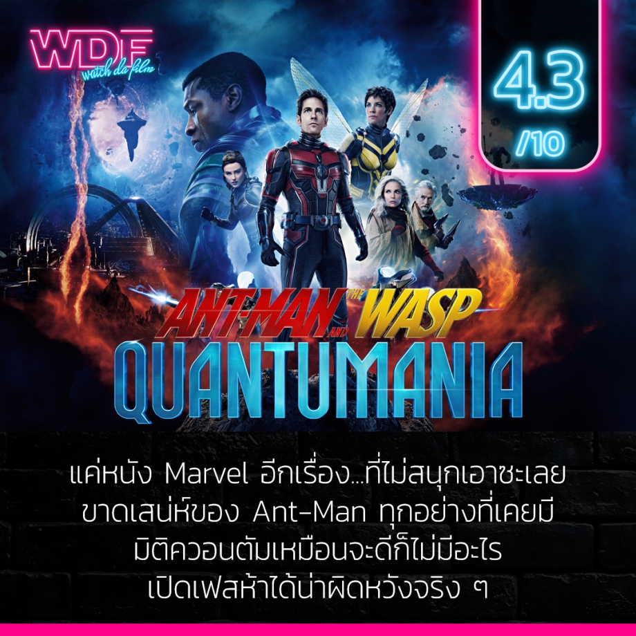 Ant-Man and the Wasp: Quantumania - แอนท์-แมน และ เดอะ วอสพ์: ตะลุยมิติควอนตัม เป็นหนังภาคที่ 3 ของ Ant-Man และเป็นหนังเปิดเฟสห้าของจักรวาล MCU ที่บอกตามตรงว่าช่วงหลังหนัง Marvel นี่ต่อไม่ติดกับเราสุด ๆ อย่างก่อนหน้านี้ Black Panther: Wakanda Forever หนังปิดเฟสสี่ก็ทำผิดหวังมาทีแล้ว พอมาเรื่องนี้นอกจากมันก็ไม่ได้ทำเราตื่นเต้นอะไร มันยังเป็นหนังเปิดเฟสห้าด้วยความผิดหวังอย่างต่อเนื่องอีกด้วย