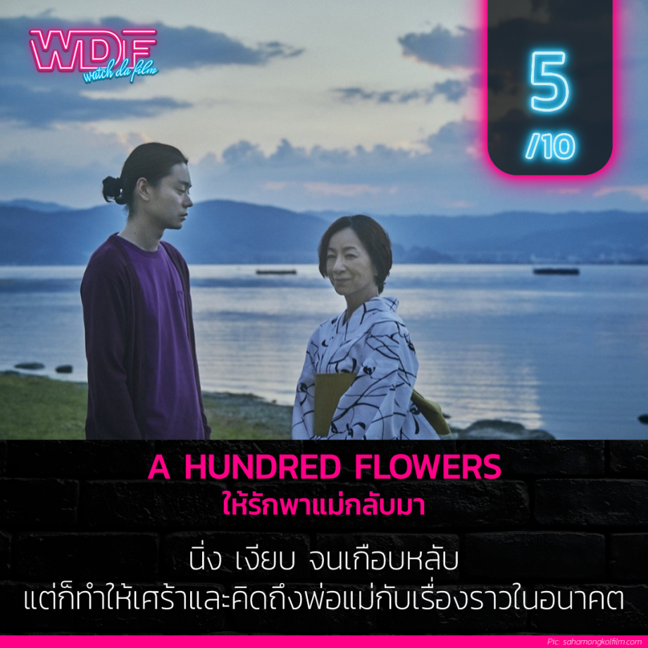 หนัง A Hundred Flowers หรือชื่อไทยว่า ให้รักพาแม่กลับมา ผลงานการกำกับภาพยนตร์เรื่องแรกของ “เกงกิ คาวามูระ” โปรดิวเซอร์คนดังจาก “Your Name” (2016), “Mirai” (2018), “Confession” (2010) รวมถึงนักเขียนไลต์โนเวลเรื่องดัง “If Cats Disappeared from the World” (2012) “A Hundred Flowers” เล่าเรื่องของ “อิซุมิ” (มาซากิ สุดะ) ผู้ออกตามหา “ยูริโกะ” (มิเอโกะ ฮาราดะ) แม่ที่หายตัวไปในคืนคริสต์มาสอีฟด้วยโรคอัลไซเมอร์ เรื่องราวของสายใยรัก ความผูกพัน และความลับที่คุณไม่อาจคาดเดา… เรื่องราวของ “ยูริโกะ” (มิเอโกะ ฮาราดะ) ครูสอนเปียโนที่หมอวินิจฉัยว่าเธอเป็นโรคความจำเสื่อม จนถึงวันที่เธอค่อยๆ สูญเสียความสามารถในการเล่นเปียโนไป แต่ทุกครั้งที่ความทรงจำหายไป “อิซุมิ” (มาซากิ สุดะ) ลูกชายของเธอจะนำความทรงจำของแม่หวนคืนมาได้ทุกครั้ง จนกระทั่งครั้งสุดท้ายที่แม่พูดว่า “อยากไปดูดอกไม้ไฟครึ่งซีก” แล้วเธอก็ได้หายออกจากบ้านไป อิซุมิพบ “ไดอารีเล่มหนึ่ง” ซึ่งนำไปสู่ “ความลับของแม่” ที่เขาไม่เคยรู้ และความจริงของ “เหตุการณ์นั้น” ที่ทำให้แม่หายไป…
