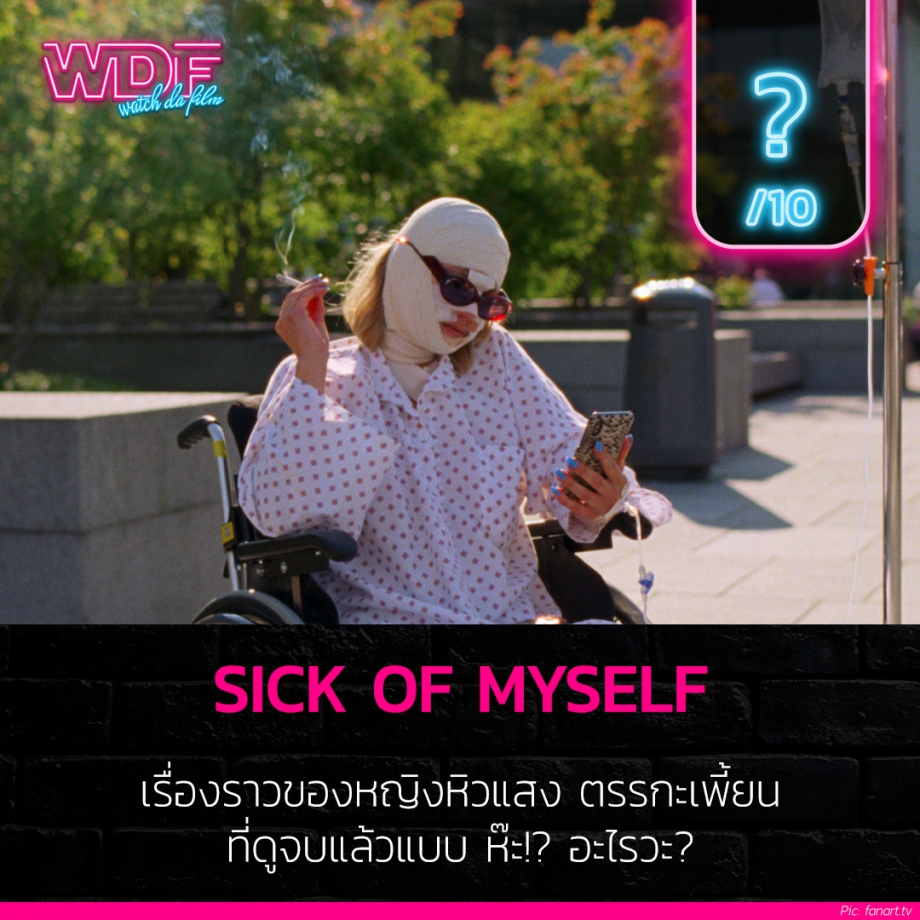 หนัง Sick of Myself หรือชื่อไทยว่า ซิค ออฟ มายเซลฟ์ “จะทำยังไงเมื่อหัวใจของคุณไม่ยอมมูฟออน“ เรื่องราวของ ซิงเนอ กับ ธอมัส ที่ความสัมพันธ์ระหว่างพวกเขาอยู่ในช่วงเปราะบาง ในขณะที่อาชีพหน้าที่การงานของแฟนหนุ่มกำลังรุ่งเรืองแซงหน้าขึ้นไปเรื่อย ๆ ในฐานะศิลปิน ทำให้เธอคิดหาวิธีพยายามตอบโต้และกระชับความสัมพันธ์ด้วยการวางแผนชั่วร้ายที่จะใช้ "โรคกำเนิดใหม่" มาเป็นสิ่งเรียกร้องความสนใจ แต่กลายเป็นว่ามันมอบแรงดึงดูดจากทั้งสังคมมายังที่เธอ และมากกว่าผลลัพธ์ที่เธอได้คาดหวังไว้