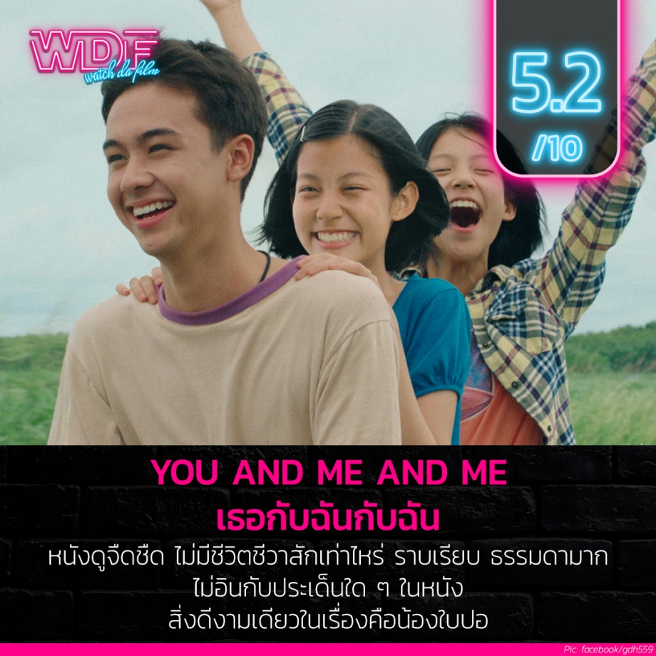 สรุปแล้ว You and Me and Me - เธอกับฉันกับฉัน เป็นหนังที่ค่อนข้างน่าผิดหวังเรื่องนึงของ GDH เลย เพราะตลอดทั้งเรื่องเรารู้สึกได้ว่ามันธรรมดาจนเกินไปมาก ๆ มันราบเรียบ และคาดเดาง่าย หนังได้ความน่ารักของน้องใบปอคอยพยุงเอาไว้ ส่วนนอกเหนือจากนั้นก็ไม่มีอะไรเลยจริง ๆ