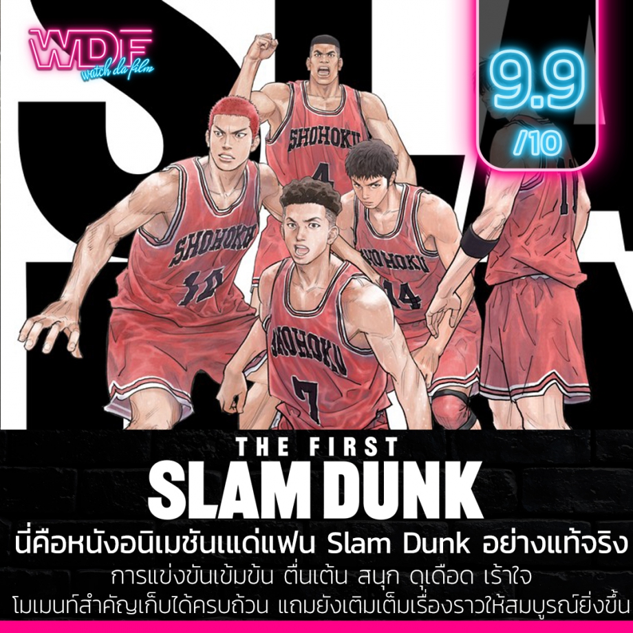 The First Slam Dunk คือหนังอนิเมชันที่หยิบยกเอาเหตุการณ์ในการ์ตูน Slam Dunk ช่วงที่ โชโฮคุ มาเจอกับ เทคโนซังโน มาบอกเล่า ซึ่งนี่คือฉากจบช่วงสุดท้ายในฉบับมังงะ แน่นอนว่าหลากหลายเหตุการณ์สำหรับแฟน Slam Dunk ก็น่าจะรู้และคุ้นเคยกับมันอยู่แล้ว ว่ามันจะเกิดอะไรขึ้นบ้าง แต่ถึงจะรู้อยู่แล้ว ตัวหนังก็ยังสามารถถ่ายทอดออกมาให้เราสนุก ตื่นเต้น เร้าใจ ในเกมการแข่งขันได้อย่างดี แถมยังเติมเต็มเรื่องราว บอกเล่าได้อย่างยอดเยี่ยมและไหลลื่นมาก ๆ ในฐานะแฟนของ Slam Dunk รู้สึกประทับใจ เต็มอิ่มและแฮปปี้กับหนังเรื่องนี้มาก ๆ และที่มันน่าประทับใจขนาดนี้ก็คงเพราะอาจารย์ ทาเคฮิโกะ อิโนะอุเอะ มานั่งแท่นกำกับและเขียนเรื่องราวเองด้วย
