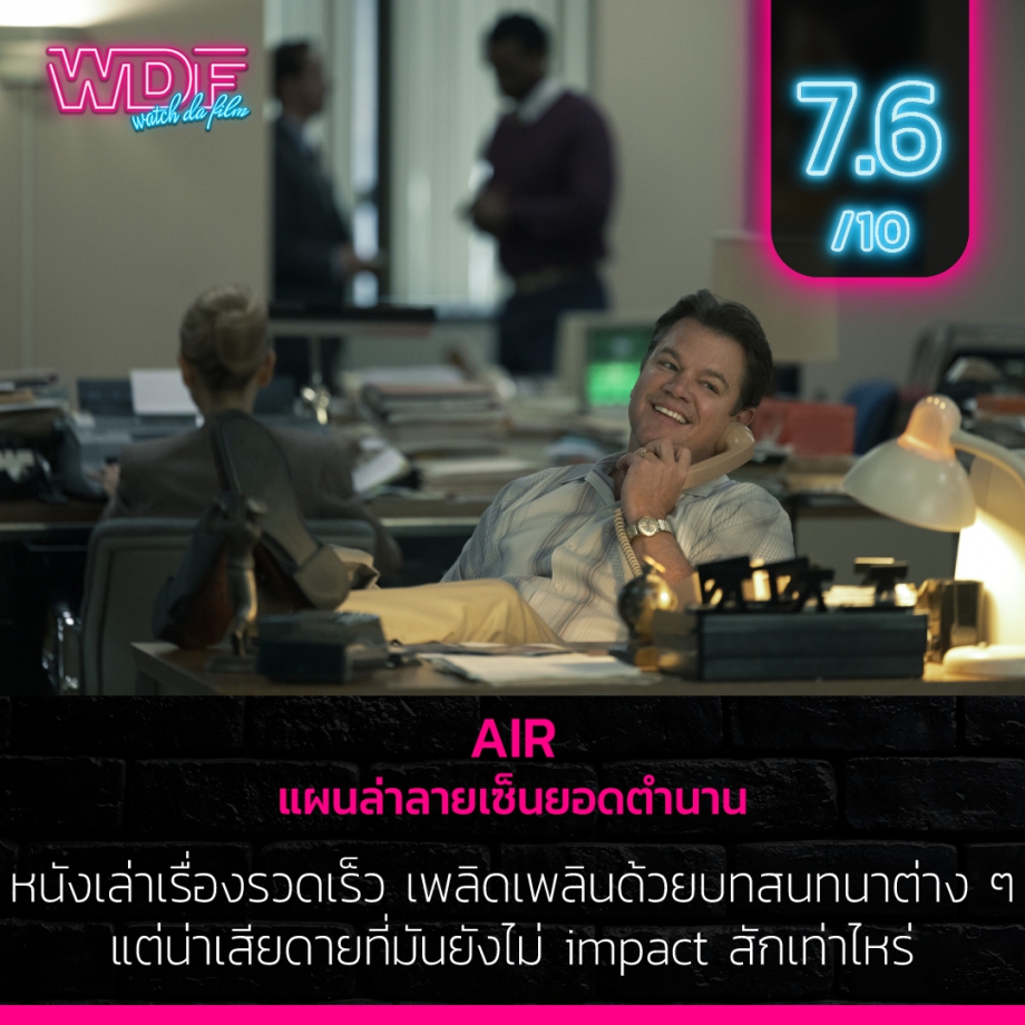 สรุปแล้ว Air - แผนล่าลายเซ็นยอดตำนาน จะเป็นหนังที่เพลินกับบทสนทนาและมุกต่าง ๆ ได้เรียนต้นกำเนิดของรองเท้า Nike Air Jordan แต่มันก็ยังไปไม่สุดสักเท่าไหร่ มันยังส่งความยิ่งใหญ่มาให้เราไม่ได้มากเท่าที่ควร