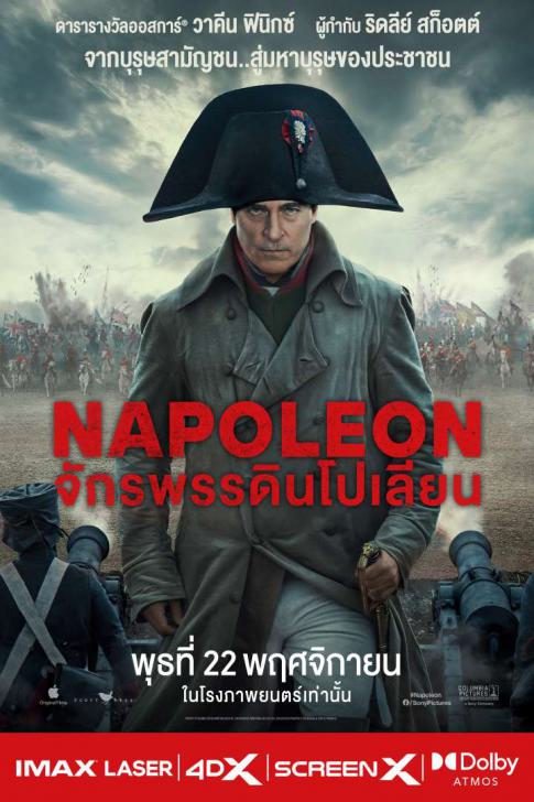 หนัง Napoleon หรือชื่อไทยว่า จักรพรรดินโปเลียน NAPOLEON จักรพรรดินโปเลียน ภาพยนตร์แอ็คชั่น-สงครามที่เต็มไปด้วยเรื่องราวสุดตื่นเต้นของการผงาดขึ้นครองบัลลังก์ของจักรพรรดินโปเลียน โบนาปาร์ต ผู้เกรียงไกร รับบทโดยนักแสดงรางวัลออสการ์ “วาคิน ฟีนิกซ์” พร้อมด้วยฉากหลังน่าทึ่งของการถ่ายทำสเกลใหญ่ภายใต้การควบคุมของผู้กำกับระดับตำนาน “ริดลีย์ สก็อตต์” ภาพยนตร์เรื่องนี้ได้ถ่ายทอดการเดินทางขึ้นสู่การครองอำนาจของนโปเลียน โบนาปาร์ต ผ่านมุมมองความสัมพันธ์อันลึกซึ้งระหว่างเขากับ โจเซฟีน หญิงสาวที่เป็นรักแท้หนึ่งเดียวของเขา แสดงให้เห็นถึงกลยุทธ์ทางการเมืองและการทหารที่มีวิสัยทัศน์กว้างไกล ในซีเควนซ์สมจริงที่สุดเท่าที่เคยมีการถ่ายทำมา