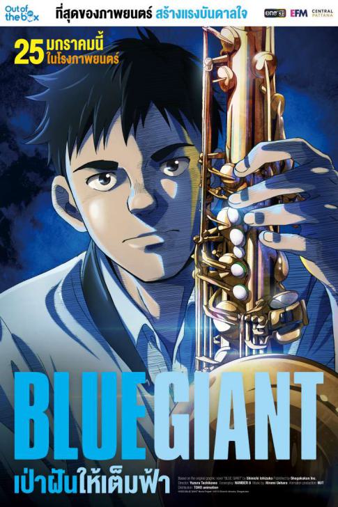 หนัง Blue Giant เรื่องราวของ มิยาโมโตะ ได นักเรียนมัธยมปลายผู้เริ่มเล่นแซ็กโซโฟน เพราะหลงใหลในดนตรี จึงตัดสินใจเดินทางมาโตเกียวเพื่อไล่ตามความฝันก่อนได้ก่อตั้งวงดนตรีกับเพื่อนอีกสองคน ซึ่งเป้าหมายของพวกเขาคือ การขึ้นแสดงที่ So Blue คลับระดับสูงชื่อดังให้ได้