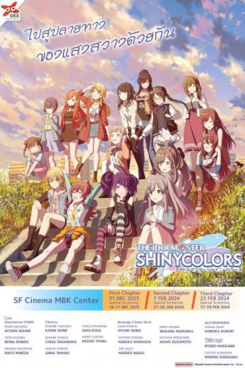 หนัง THE IDOLM@STER SHINY COLOR CHAPTER 1 “เรื่องราวของ SHINY COLORS จะโฟกัสที่ ซากุรากิ มาโนะ เด็กสาวธรรมดาที่ได้พบกับโปรดิวเซอร์ของ 283 Production โดยบังเอิญ จนเธอได้รับโอกาสให้มาเป็น ไอดอล เพื่อค้นพบโลกใบใหม่ที่ตามหา มาโนะจะได้พบกับเพื่อนไอดอล คาซาโนะ ฮิโอริ และ ฮาจิมิยะ เมกุรุ ซึ่งจะกลายเป็นกลุ่มเพื่อนที่สนิทที่สุด และก่อตั้งยูนิต 3 คนในชื่อ ‘illumination STARS’