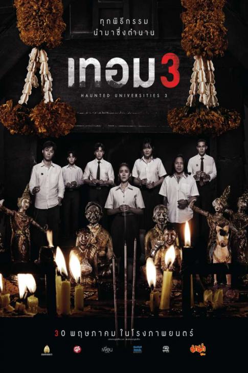 หนัง Haunted Universities 3 หรือชื่อไทยว่า เทอม 3 ขอต้อนรับสู่ภาคเรียนสยองเทอมใหม่กับภาพยนตร์ไทยสยองขวัญแห่งปี “เทอม 3” (Haunted Universities 3) ที่จะปลุกตำนานเรื่องเล่าและพิธีกรรม “บนบาน บายศรี ขอขมา” ในรั้วมหาวิทยาลัยของไทยให้หลอนสะพรึงสุดขีด พร้อมเผยโฉมหน้าเหล่านักศึกษาใหม่ ไม่ว่าจะเป็น “ตาต้า ชาติชาย” (สัปเหร่อ), “อุ้ม อิษยา” (สยามสแควร์), “อัด อวัช” (ดอยบอย), “จั๊มพ์ พิสิฐพล” (เพื่อน(ไม่)สนิท), “มาร์ช จุฑาวุฒิ” (ฝากไว้..ในกายเธอ), “แพรวา ณิชาภัทร” (ซีรีส์ Friend Zone เอา-ให้-ชัด) และ “มาร์ค ศิวัช” (ซีรีส์ บังเอิญรัก) ที่จะมาร่วมเผชิญชะตากรรมสยองเลือดสาดคาดไม่ถึง ผนึกกำลังโปรดิวซ์โดย “มะเดี่ยว-ชูเกียรติ ศักดิ์วีระกุล” และ “โขม-ก้องเกียรติ โขมศิริ” พร้อมนั่งแท่นกำกับหนังสยองครั้งแรกโดยทีมผู้กำกับเจเนอเรชันใหม่มากฝีมืออย่าง “เบิ้ล-นนทวัฒน์ นำเบญจพล” (ดอยบอย), “โจ้-อรุณกร พิค” (ส้มป่อย), “นัทสอ-สรวิชญ์ เมืองแก้ว” (ผู้ร่วมเขียนบท “ดิว ไปด้วยกันนะ”) และ “ตู้-อัศฎา ลิขิตบุญมา” (ผู้ช่วยผู้กำกับ “ดิว ไปด้วยกันนะ”)
