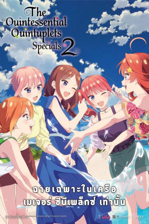 หนัง The Quintessential Quintuplets Specials 2 ตอนฮันนีมูนที่รอคอยมานาน ซึ่งสร้างจากแนวคิดดั้งเดิมของ **เนกิ ฮารุบะ** และอยู่ภายใต้การดูแลอย่างเต็มที่ของเขา ถูกนำมาถ่ายทอดเป็นภาพบนจอ เราจะพาคุณไปสัมผัสกับชีวิตประจำวันของฟูทาโร่และเหล่าห้าสาวในวัยผู้ใหญ่!