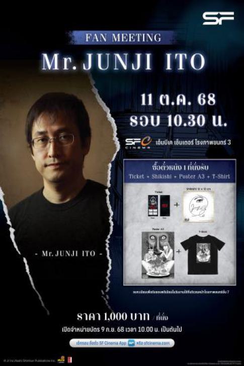 Fan Meet Junji Ito กิจกรรมสุดเอ็กซ์คลูซีฟ เอาใจแฟนๆ เรื่องราวสยองขวัญของ อ. จุนจิ อิโต้ เตรียมสัมผัสประสบการณ์สุดพิเศษกับ อ.จุนจิ อิโต้ นักเขียนการ์ตูนสยองขวัญชั้นแนวหน้าจากญี่ปุ่น เจ้าของผลงานดังระดับโลกอย่าง ก้นหอยมรณะ, โทมิเอะ, โซอิจิ และ ชายหนุ่มที่สี่แยก จะมาเยือนประเทศไทยเพื่อพบปะแฟน ๆ ชาวไทยแบบใกล้ชิด!! พร้อมร่วมพูดคุยและชื่นชมผลงานชวนหลอน ในงาน FAN MEETING “ Mr. Junji Ito ” เพื่อโปรโมทงานนิทรรศการ Junji Ito Collection Horror House 2025 ในวันที่ 11 ตุลาคม 2568 เวลา 10.30 - 11.15 น. จัดเต็ม 45 นาที โอกาสมีเพียงครั้งเดียวเท่านั้น!