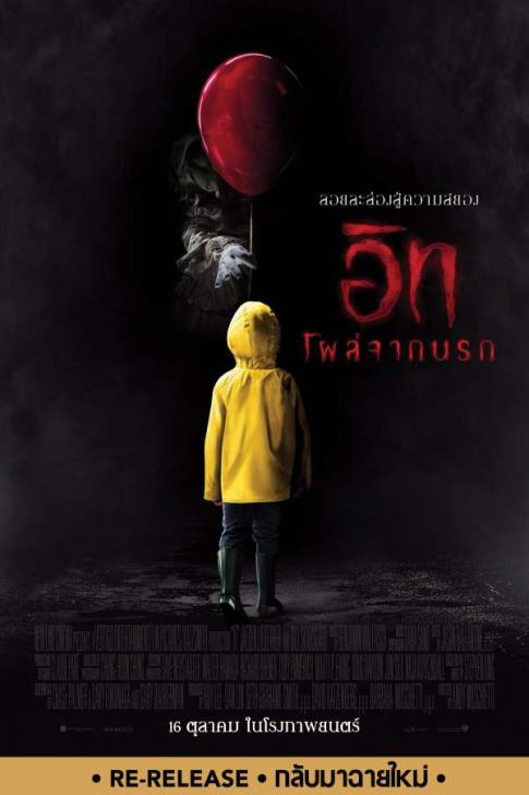 หนัง IT RE ภาพยนตร์แนวทริลเลอร์สยองขวัญ ผลงานจากนิวไลน์ ซีเนม่า เรื่อง “IT” กำกับฯ โดย อันเดรส มูเชตติ (“Mama”) สร้างขึ้นจากนิยายที่ได้รับความนิยมอย่างสูง ผลงานของสตีเฟน คิง ในชื่อเดียวกันซึ่งสร้างความสยองขวัญให้กับผู้อ่านมานานหลายทศวรรษ เมื่อเด็กๆ เริ่มหายตัวไปจากเมืองเดอร์รี่ รัฐเมน เด็กๆ กลุ่มหนึ่งต้องเผชิญกับความกลัวครั้งใหญ่เมื่อพวกเขาต้องพบกับตัวตลกร้ายที่ชื่อว่าเพนนีไวซ์ ซึ่งมีประวัติฆาตกรรมและใช้ความรุนแรงมาอย่างโชกโชนเมื่อหลายศตวรรษก่อน
