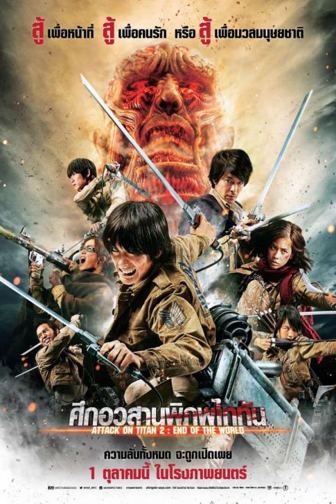 หนัง Attack On Titan 2 : End Of The World หรือชื่อไทยว่า ศึกอวสานพิภพไททัน เรื่องราวภาคต่อของภาพยนตร์ Live Action สุดยิ่งใหญ่แห่งปี สร้างจากการ์ตูนยอดนิยมที่ขายได้มากกว่า 36 ล้านเล่มทั่วโลก เรื่องราวการต่อสู้เพื่อเอาชีวิตรอดของมวลมนุษย์ชาติ ที่ต้องอาศัยและป้องกันตัวเองหลังกำแพงมหึมาจากเผ่าพันธุ์ไททัน เมื่อเอเรน, มิคาสะ และมิตรสหายที่รอดชีวิตจากสมรภูมิรับรู้แผนชั่วร้ายของนายพล ศัตรูตัวฉกาจอาจไม่ใช่แค่ไททัน อีกทั้งความลับดำมืดของตัวเอเรน หนึ่งเดียวผู้กุมชะตาโลกก็กำลังเปิดเผยในไม่ช้า และการเผชิญครั้งสำคัญระหว่างผู้รอดชีวิตและไททันมหึมากับบทสรุปของมหาสงครามเพื่อมนุษยชาติ