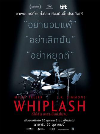Whiplash ผลงานของผู้กำกับ เดเมียน แซซเซลล์ ทีเจ้าตัวเผยว่าต้องการให้หนังที่ว่าด้วยนักดนตรีแจ๊ซเรื่องนี้เต็มไปด้วยอารมณ์แอคชั่นจนเลือดสูบฉีด แอนดรูว์ เด็กหนุ่มผู้มีพรสวรรค์ด้านการตีกลองและมีความทะเยอทะยานอยากไปไกลถึงระดับตำนาน ต้องมาพบกับการฝึกซ้อมสุดหฤโหดที่พร้อมจะบดขยี้ทั้งกำลังใจและกำลังกายจากครูระดับเซียนจอมซาดิสท์อย่าง เฟล็ตเชอร์ การฝึกซ้อมของเฟล็ตเชอร์ที่เต็มไปด้วยความกดดัน ความรุนแรงที่กระแทกทางอารมณ์ถึงขนาดปาเก้าอี้ใส่หัวจากตีกลองผิดจังหวะ หรือการให้ตีจนมือเหวอะเลือดอาบกลอง ปะทะกับลูกบ้าและความทะเยอทะยานจนเข้าขั้นเสียสติเกินคนทั่วไปจะทนไหวของแอนดรูว์ ทำให้หนังเรื่องนี้เต็มเปี่ยมไปด้วยพลังที่น่าขนลุกและเฮี้ยนเกินกว่าหน้าหนังหรือคำโปรยว่าเป็นหนังสู้เพื่อฝันอันสวยงามไปไกลหลายเท่านัก