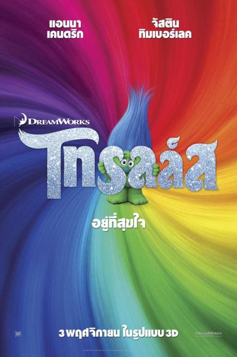 หนัง Trolls หรือชื่อไทยว่า โทรลล์ส แอนิเมชั่นคอมเมดี้เรื่อง Trolls มาพร้อมเสียงดนตรีชวนตื่นเต้น ผลงานจากเหล่าผู้สร้างยอดฝีมือผู้สร้าง Shrek , มาดากัสการ์ และ กังฟูแพนด้า พร้อมด้วยนักแสดงมากฝีมือมาร่วมให้เสียงพากย์ นำโดย แอนนา เคนดริค ในบท ป๊อปปี้ ผู้นำแห่งโทรลส์ที่มองโลกแง่ดีสุด ๆ และฝ่ายตรงข้ามของเธออย่าง บรานช์ ที่รับบทโดย จัสติน ทิมเบอร์เลค กำกับโดย ไมค์ มิทเชลล์, วอลท์ ดอร์น เตรียมพบกับสิ่งมีชีวิตที่สามารถร้อง เต้น ลั้นลา และเนื้ออร่อย ได้ใน Trolls